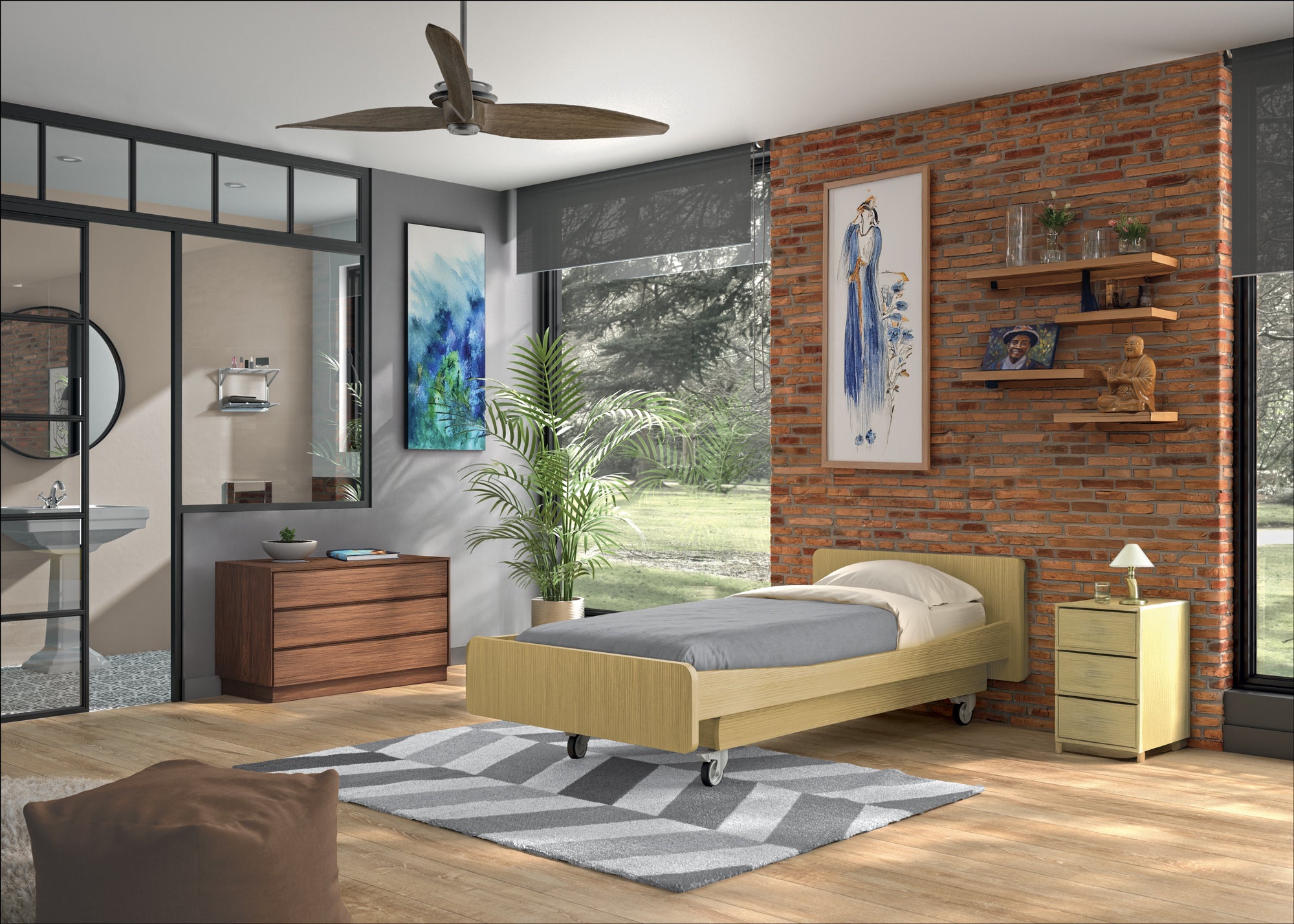 La qualité des matériaux utilisés et la beauté des revêtements permet d'avoir accès à un lit technique et élégant à la fois. Ses couleurs chaudes donnent un aspect chaleureux à la chambre à coucher.